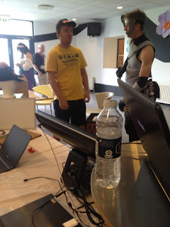 After the workshop I had to sit at the back entrance to check the guests bracelets to make sure that only staffers and guest entered the convention... It was so boring but I had company! so I wasn't alone because we had to be two people on duty ^^